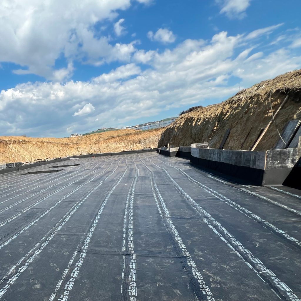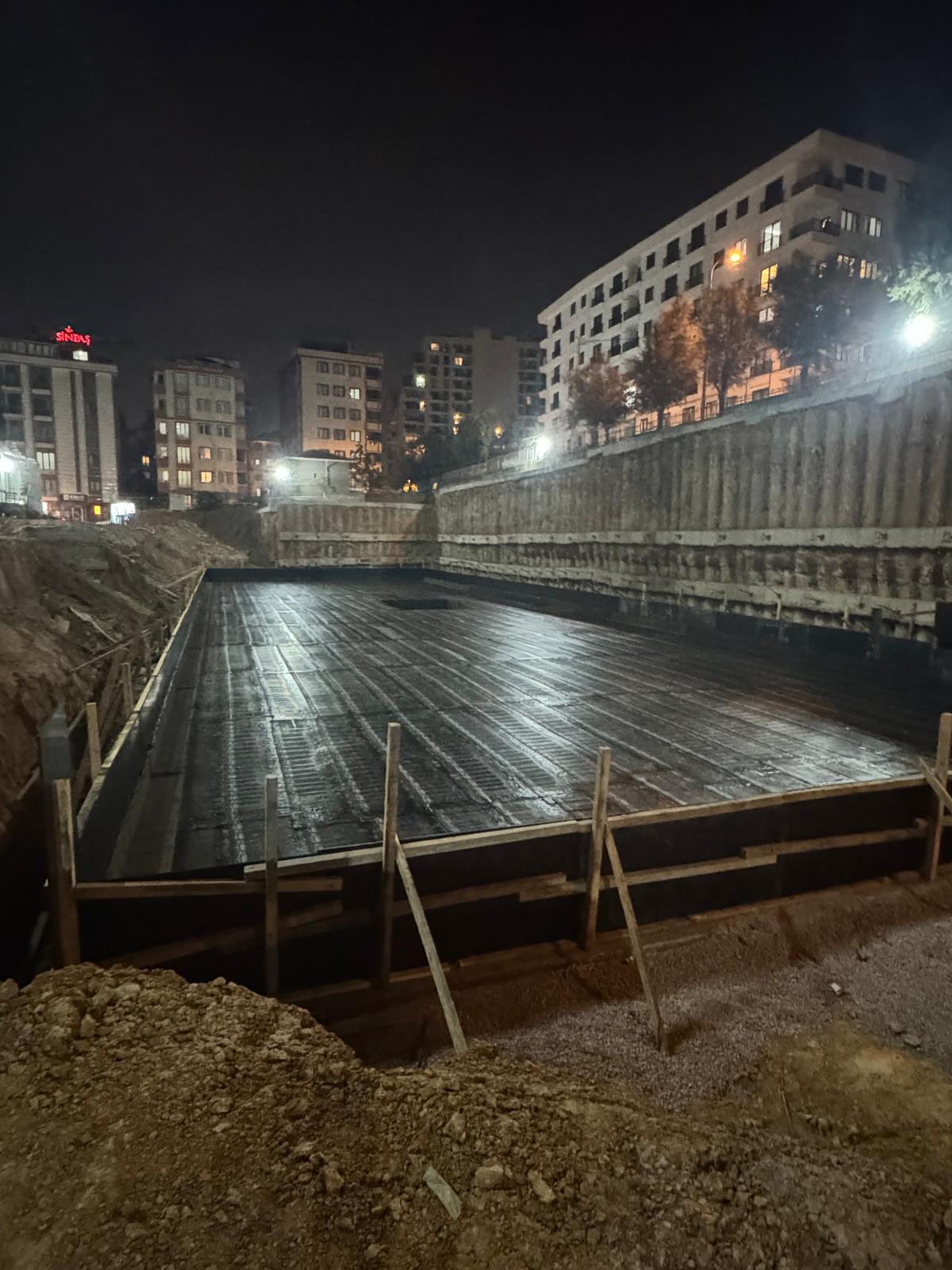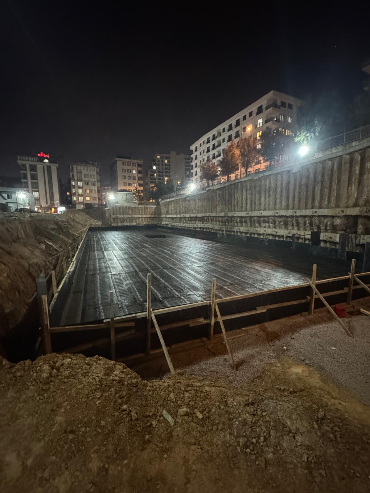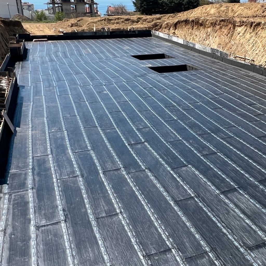 Grobeton dökümü sonrasında makina perdah yapılır. Hazırlanmış olan grobeton yüzeyi kuru durumda iken SBS (Styrene Butadine Styrene) Polimer ile modifiye edilmiş, 5 mm homojen kalınlığa sahip, içerisinde veya yüzeyinde taşıyıcı keçe ve yapısında dolgu malzemesi (kalsit v.b.) içermeyen, her yöne %1600 esneyebilen, -25°C soğukta esnekliğini koruyan, alt ve üst yüzeyi zemine tam yapışmaya olanak sağlayan PE Film kaplı, kendi kendini tamir edebilen ve üç boyutlu işlenebilen bitüm esaslı su yalıtım örtüsü tek kat olarak uygulanır.